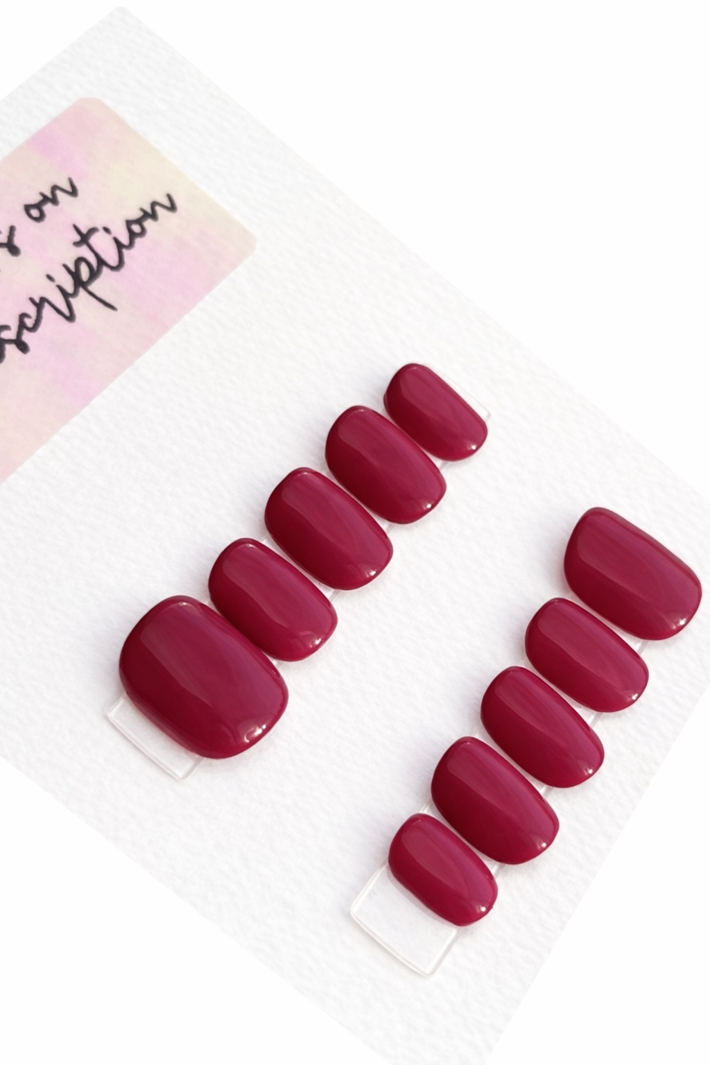 A muted rose-red with a smooth, glossy finish—romantic, refined, and effortlessly chic.